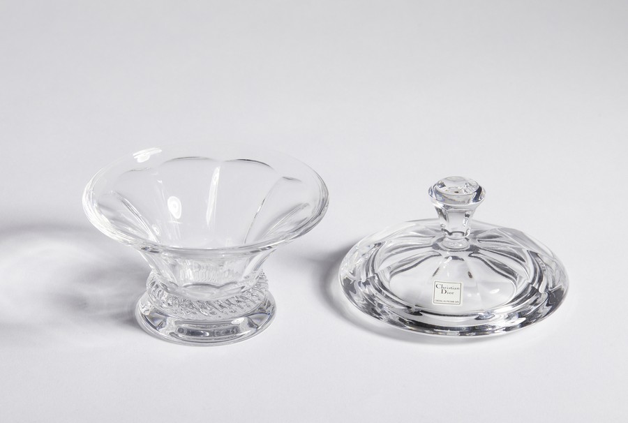 DIOR CHRISTIAN (1905 - 1957) Scatola Dior. Cristallo. Cm 12,00 x 12,00. Scatola Dior in cristallo con firma incisa al retro della base, etichetta sul coperchio.