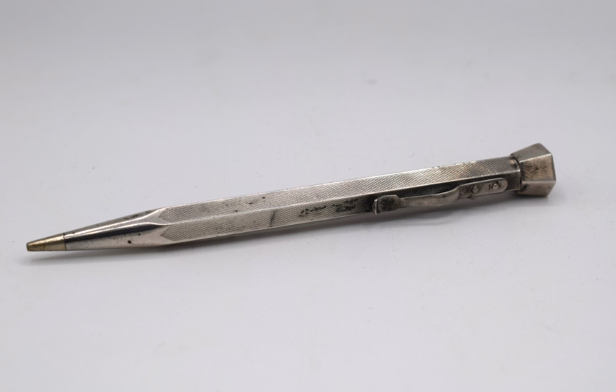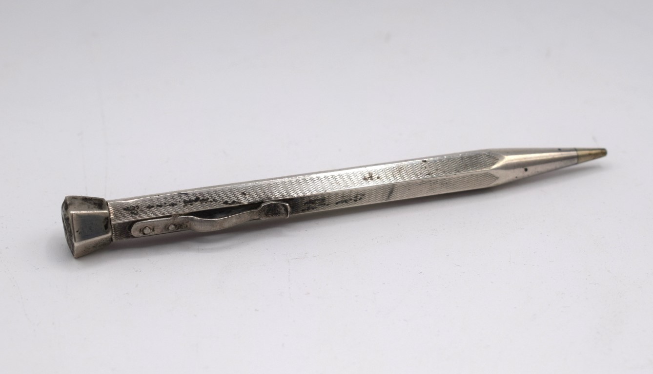 Precedente Lotto 43 Successivo Guidoriccio Casa d'Aste - Via ferraris 128, 52100 AREZZO Argenti, arte della tavola e complementi di arredo sessione unica giovedì 10 aprile 2025 ore 15:00 (UTC +01:00) Portamine in argento Portamine in argento Bollo argento 835 L cm 11.5