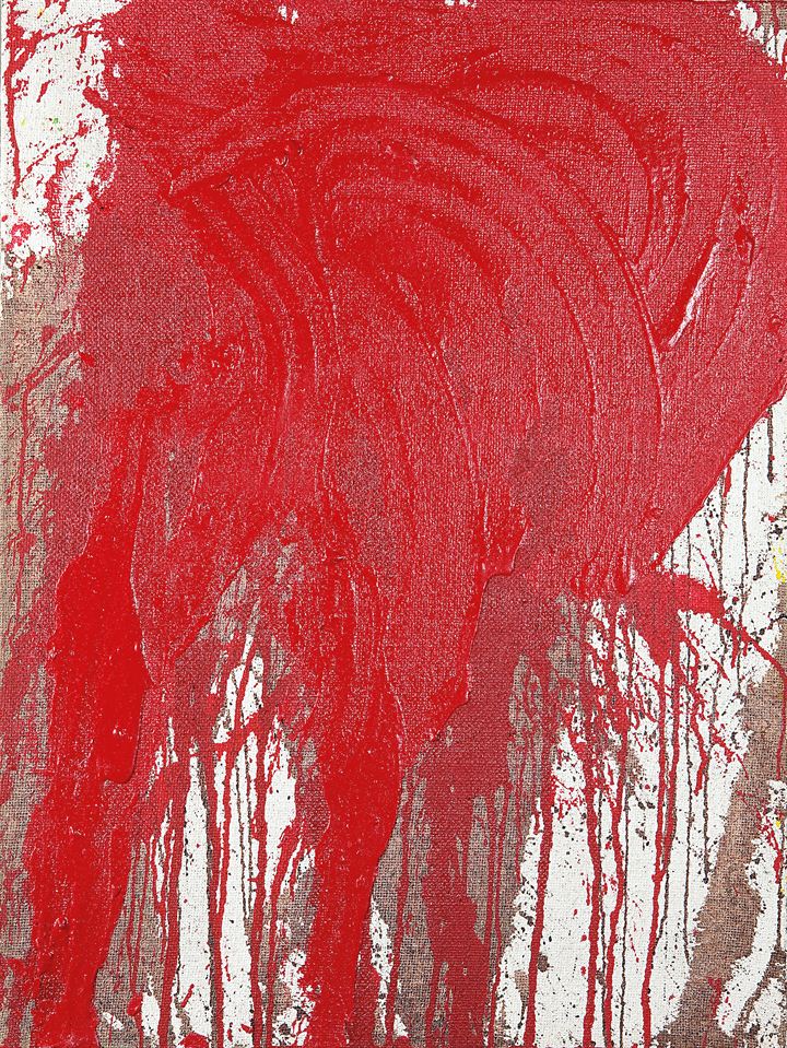 NITSCH HERMANN Vienna 1938 "Schüttbild" 2008 80x60 olio su tela Opera firmata...