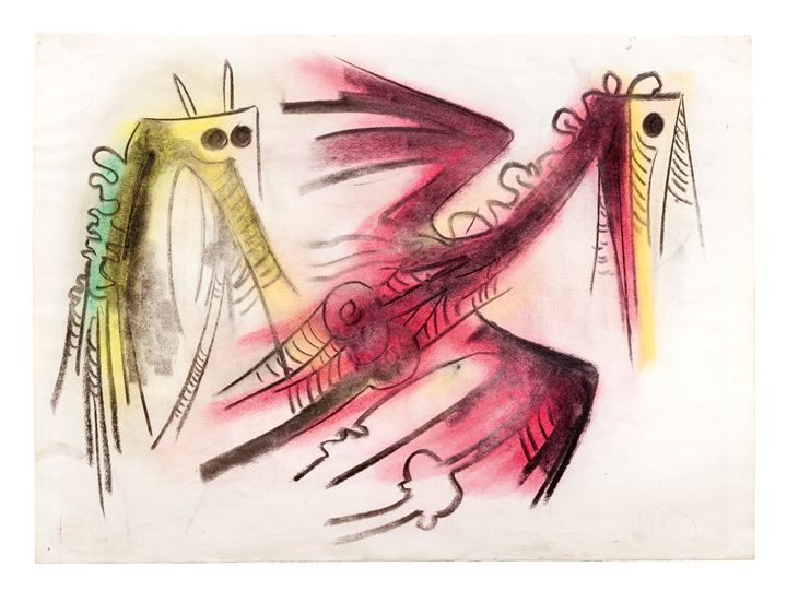 LAM WIFREDO Saugua La Grande (Cuba) 1902- 1982 Parigi "Oiseaux" fine anni...