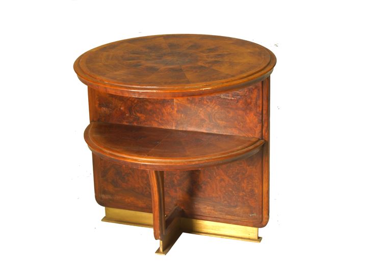 MERLOTTI ERCOLE TORINO Coppia di tavolini in radica e ottone. Prod. Merlotti...