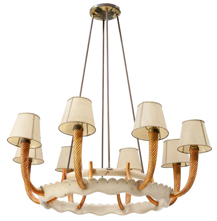 BUFFA PAOLO Lampada a sospensione in legno laccato, struttura in ottone ....