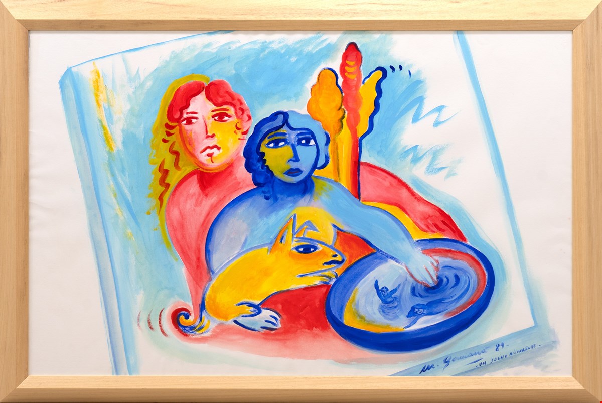 Mimmo Germanà, Un sogno ricorrente, 1989, Olio su carta, 80x120 cm, Archiviazione presso Archivio Germanà, Firma data e titolo al recto, Cornice in omaggio