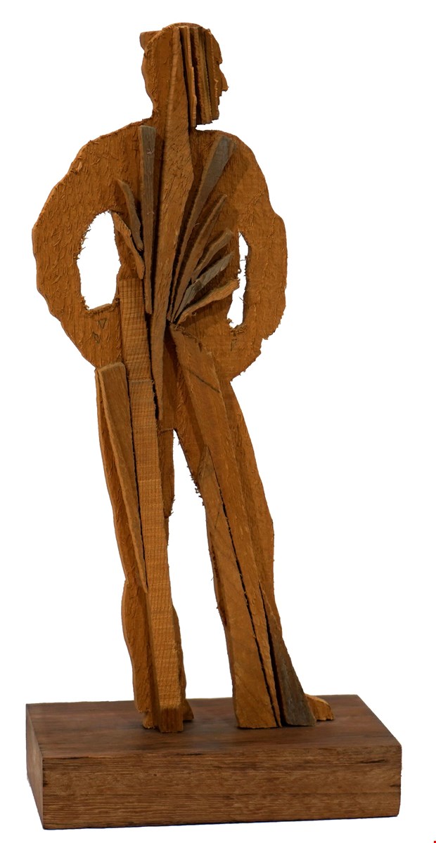 Mario Ceroli, Autoritratto, 1989, Scultura in pino di Russia, 38x17x12.5 cm, Firma alla base