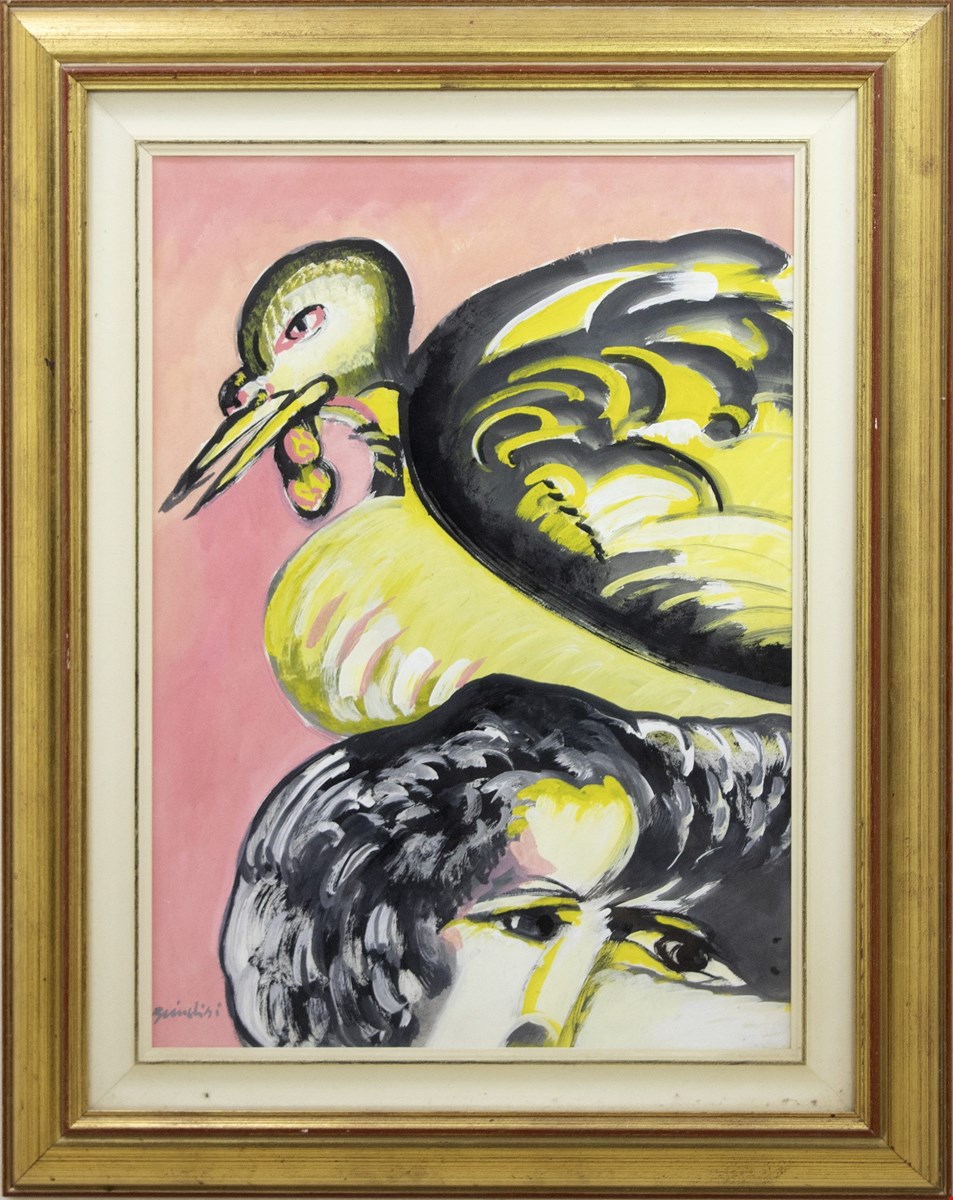 Remo Brindisi, Senza Titolo, anni Ottanta, Tempera su cartoncino, 70x50 cm, Autentica a cura dell'artista, Firma al recto, Cornice in omaggio