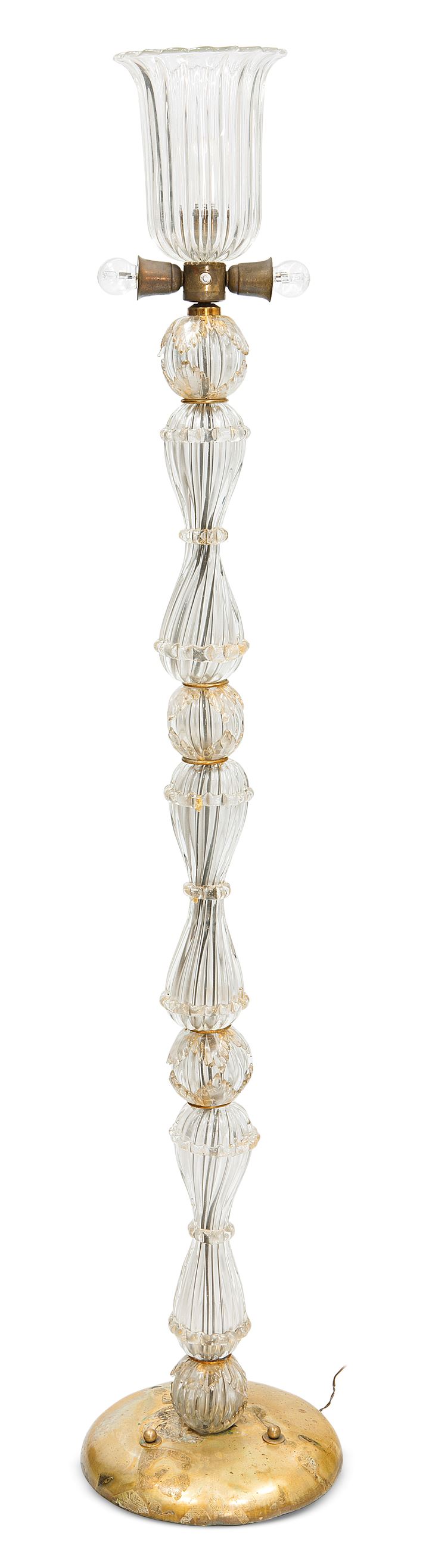 SEGUSO Lampada da terra in vetro di Murano trasparente. Montatura in ottone....