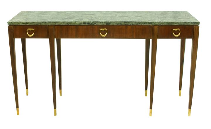 BUFFA PAOLO Console in legno di palissandro, piano in marmo e puntali in...