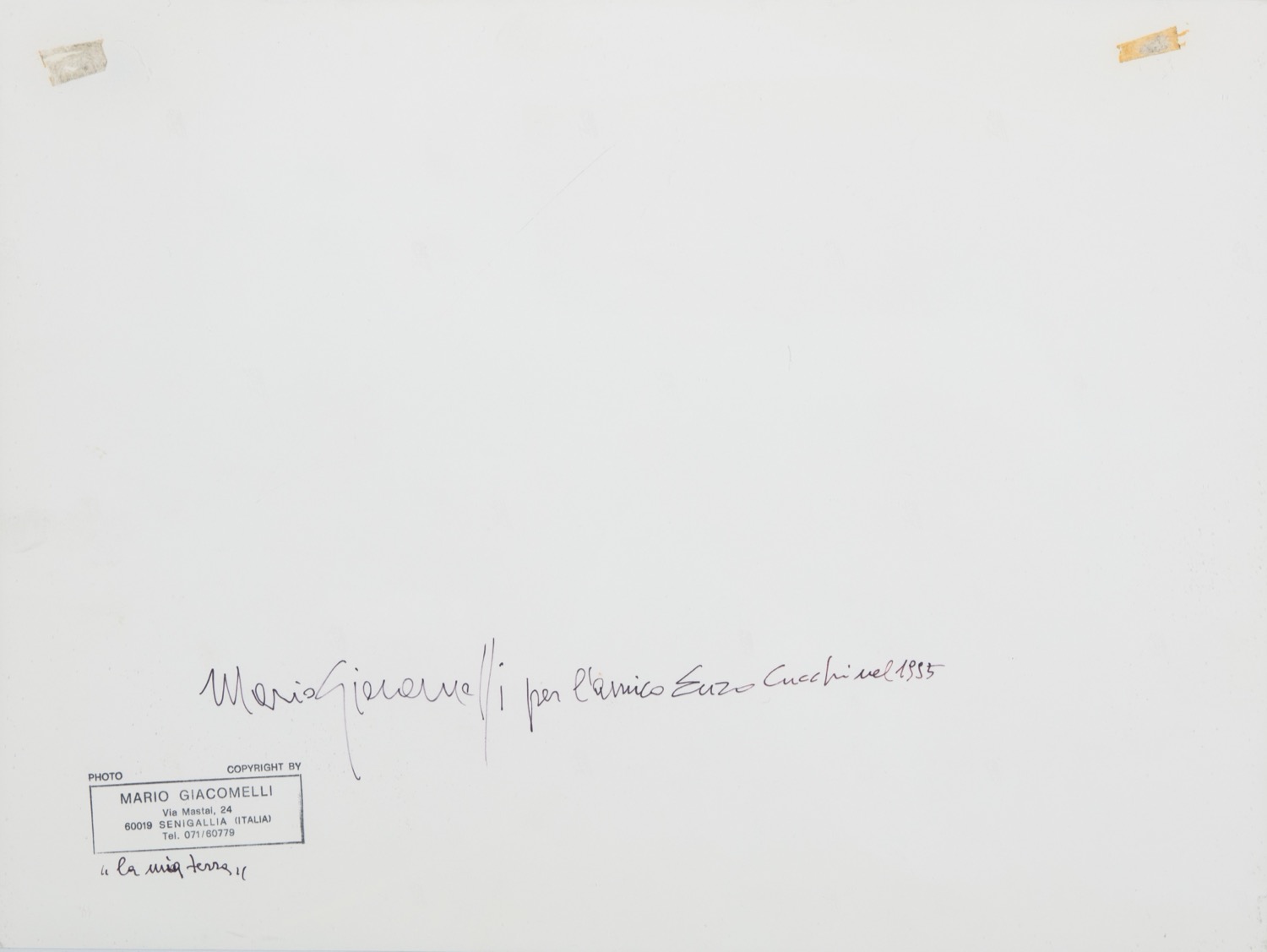 La prima stampa firmata, dedicata e titolata a penna nera con timbro del fotografo al verso