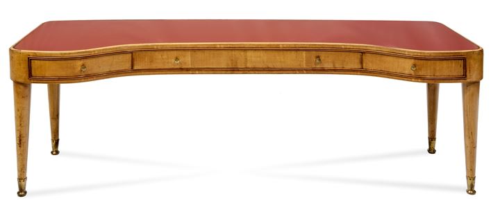 BUFFA PAOLO Console in legno d'acero e vetro colorato, puntali in ottone....