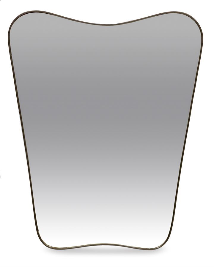 Grande specchiera con bordo in ottone e cristallo specchiato.