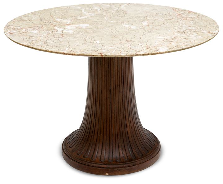 Lotto 553 | BORSANI OSVALDO (attribuito) Tavolo in legno di noce con piano in marmo. Anni...
