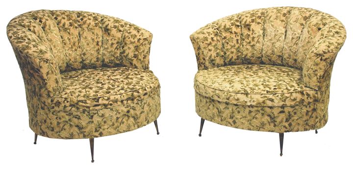 PRODUZIONE ITALIANA Coppia di poltrone con imbottitura rivestita in velluto a...