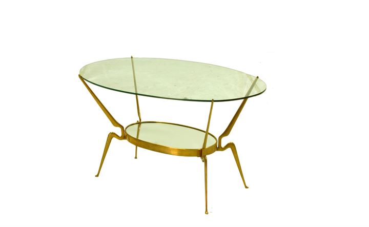 LACCA CESARE Tavolino con struttura in ottone lucido, piano in vetro...