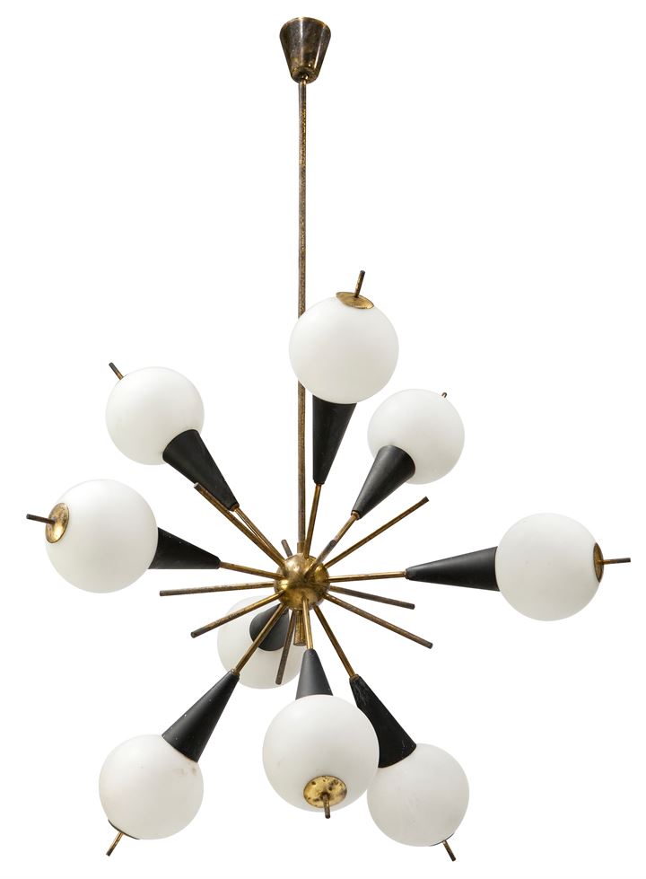 STILNOVO Lampada a sospensione in ottone, metallo laccato e vetro. Prod....
