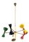 Lampada a sospensione in ottone con elementi orientabili in lamiera laccata.