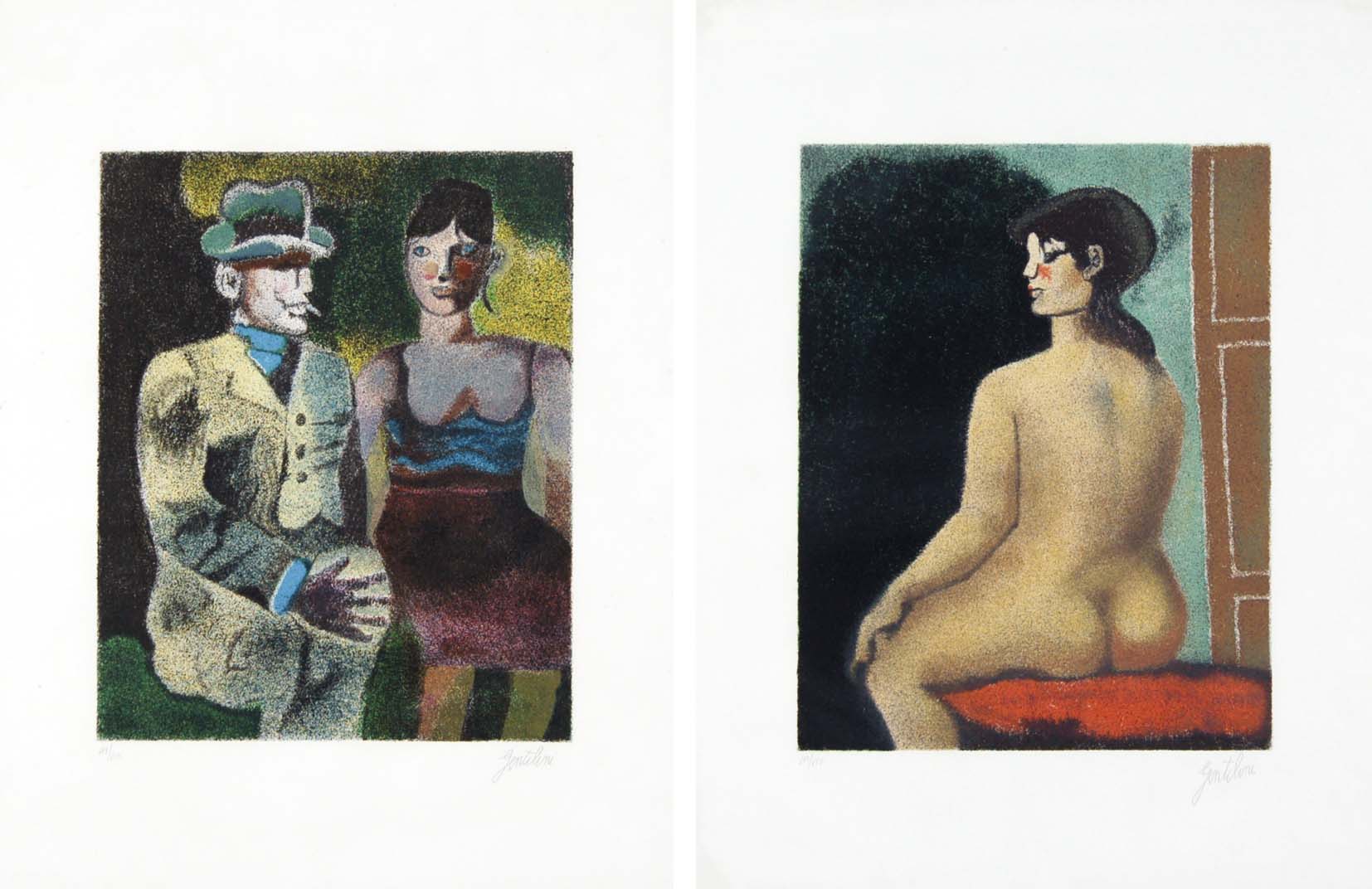 GENTILINI FRANCO Faenza 1909 - Roma 1981 Luisa e Ippolito sul tramwai - Nudo lotto di due litografie es. 119/150 - 110/150 65x50 cad. cm firma in basso a destra tiratura in basso a sinistra
