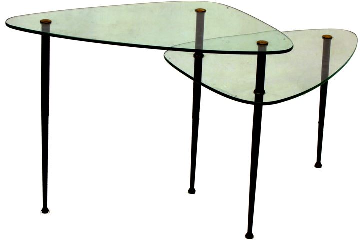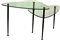Tavolino per vitrex in acciaio smaltato, ottone e cristallo temperato.