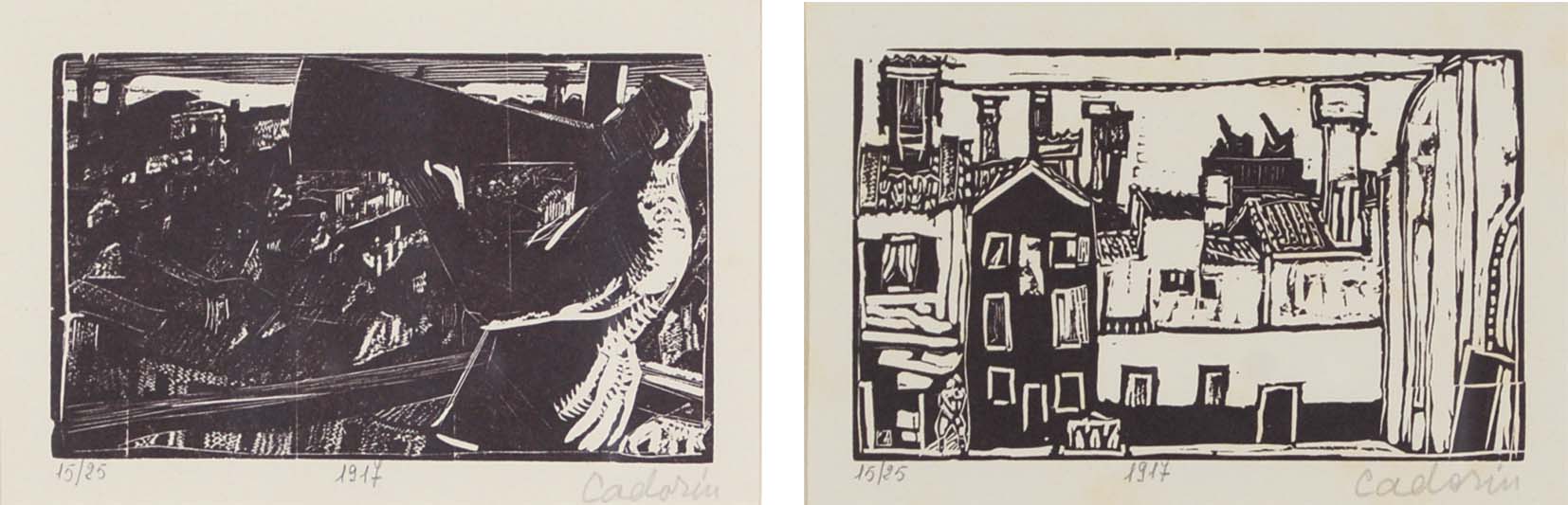 CADORIN GUIDO Venezia 1892 - 1977 Soggetti vari 1917 lotto di 2 xilografie...