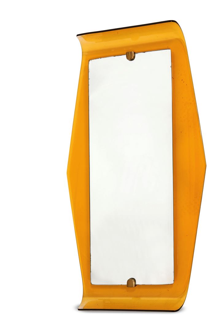FONTANA ARTE Specchiera in cristallo curvato e molato, ottone lucido e...