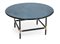 Tavolino con struttura in metallo laccato e ottone, piano rotondo in cristallo.