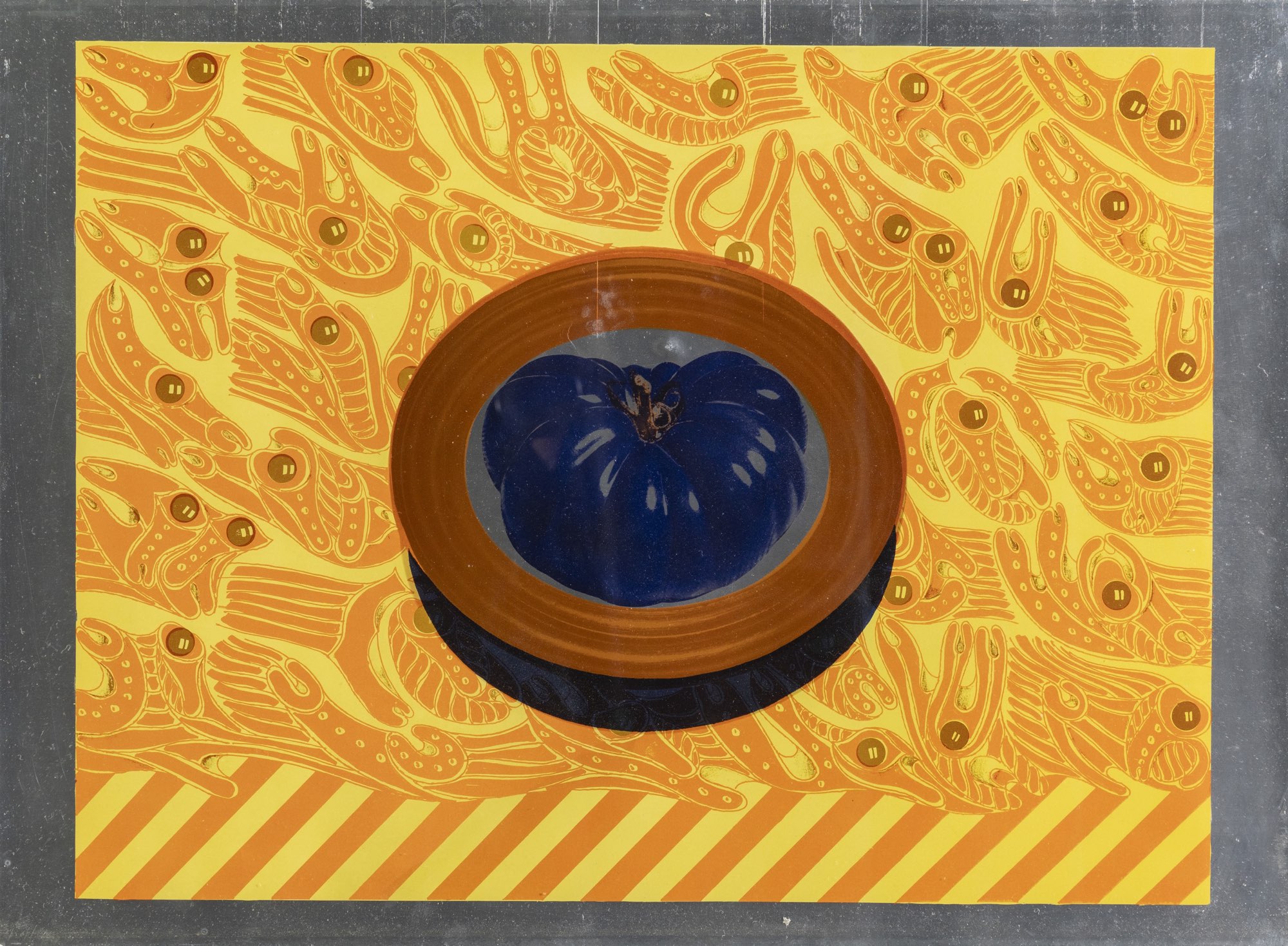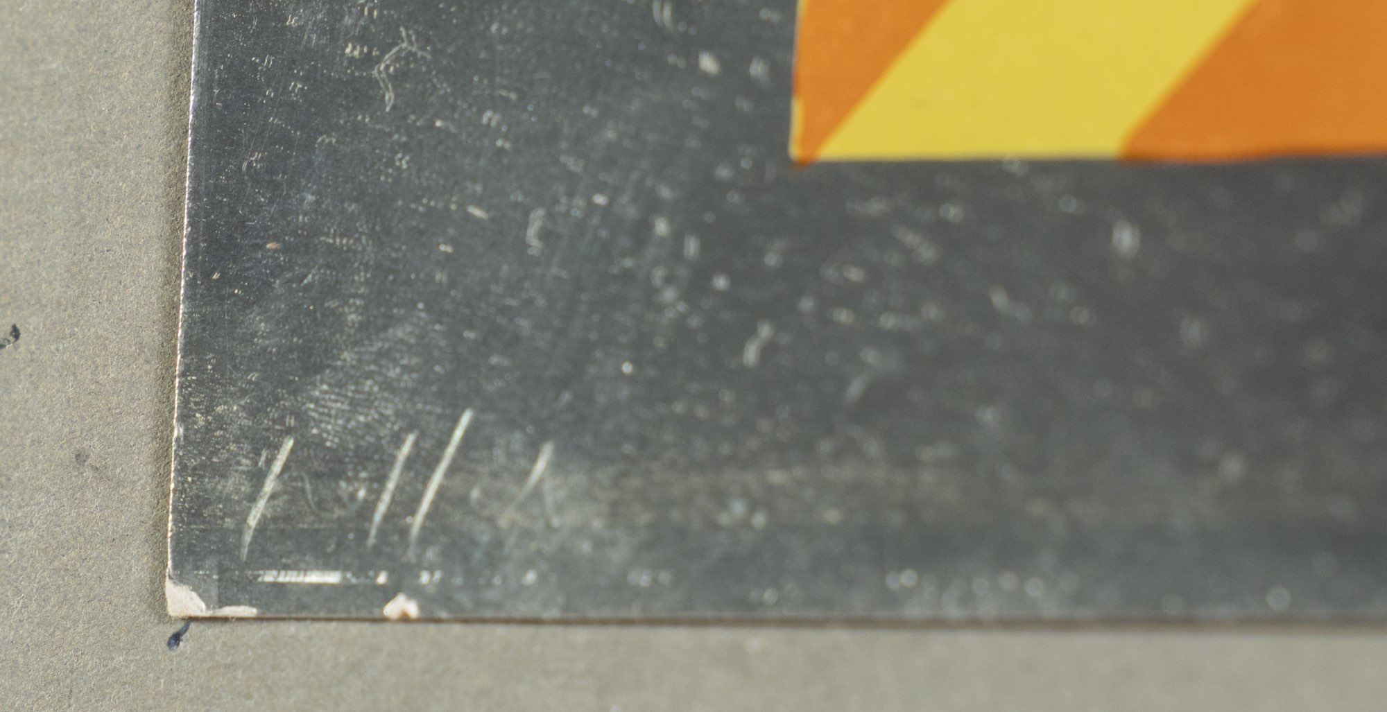 Serigrafia a colori su carta metalizzata, firmato in basso a sinistra, reca in basso a destra esemplare “p.a.”, H cm 48.5x66.5 – con cornice H cm 62.5x84
