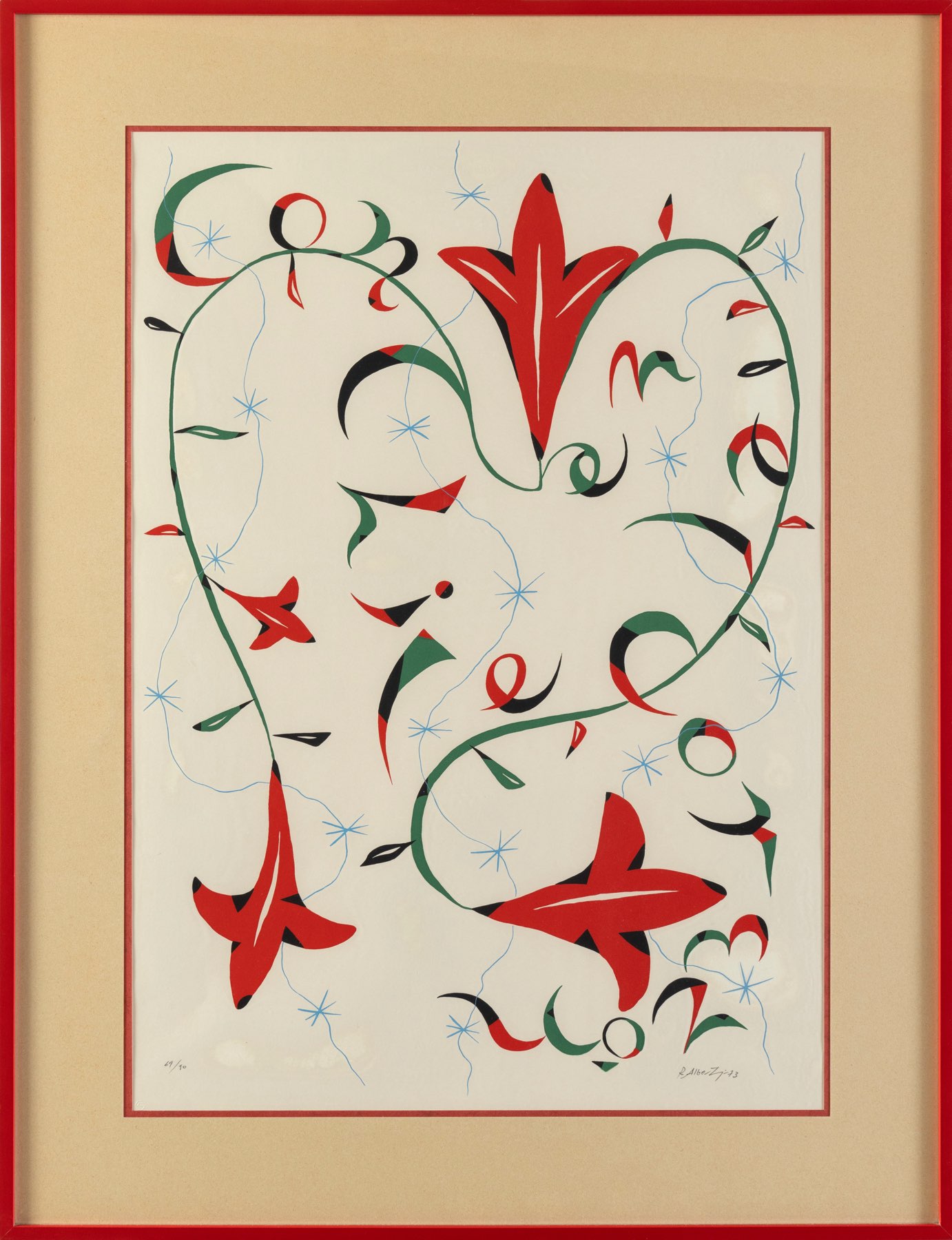 Litografia a colori su carta, firmata e datata in basso a destra, numero di tiratura e timbro a secco in basso a sinistra 69/90, Foglio H cm 85x66