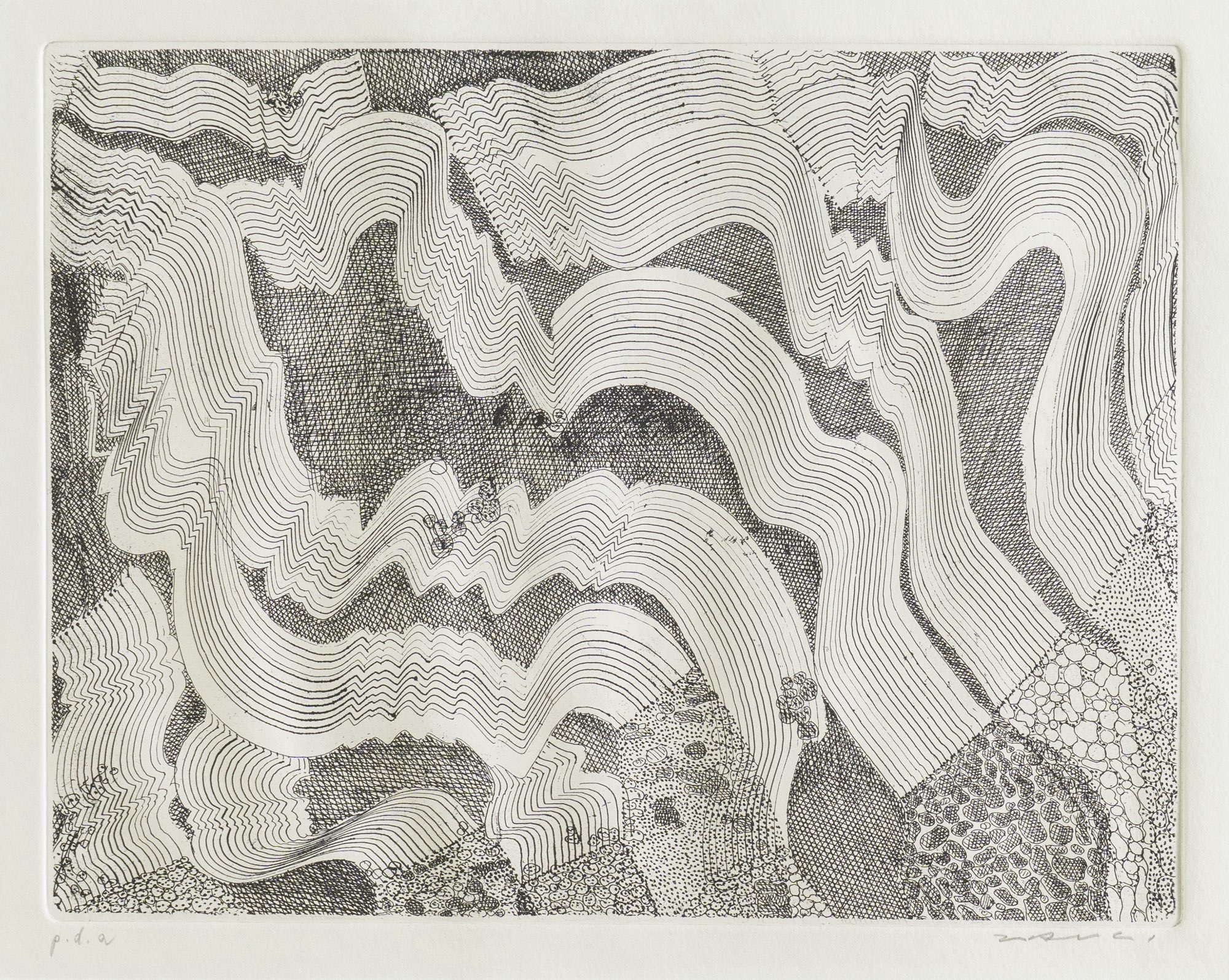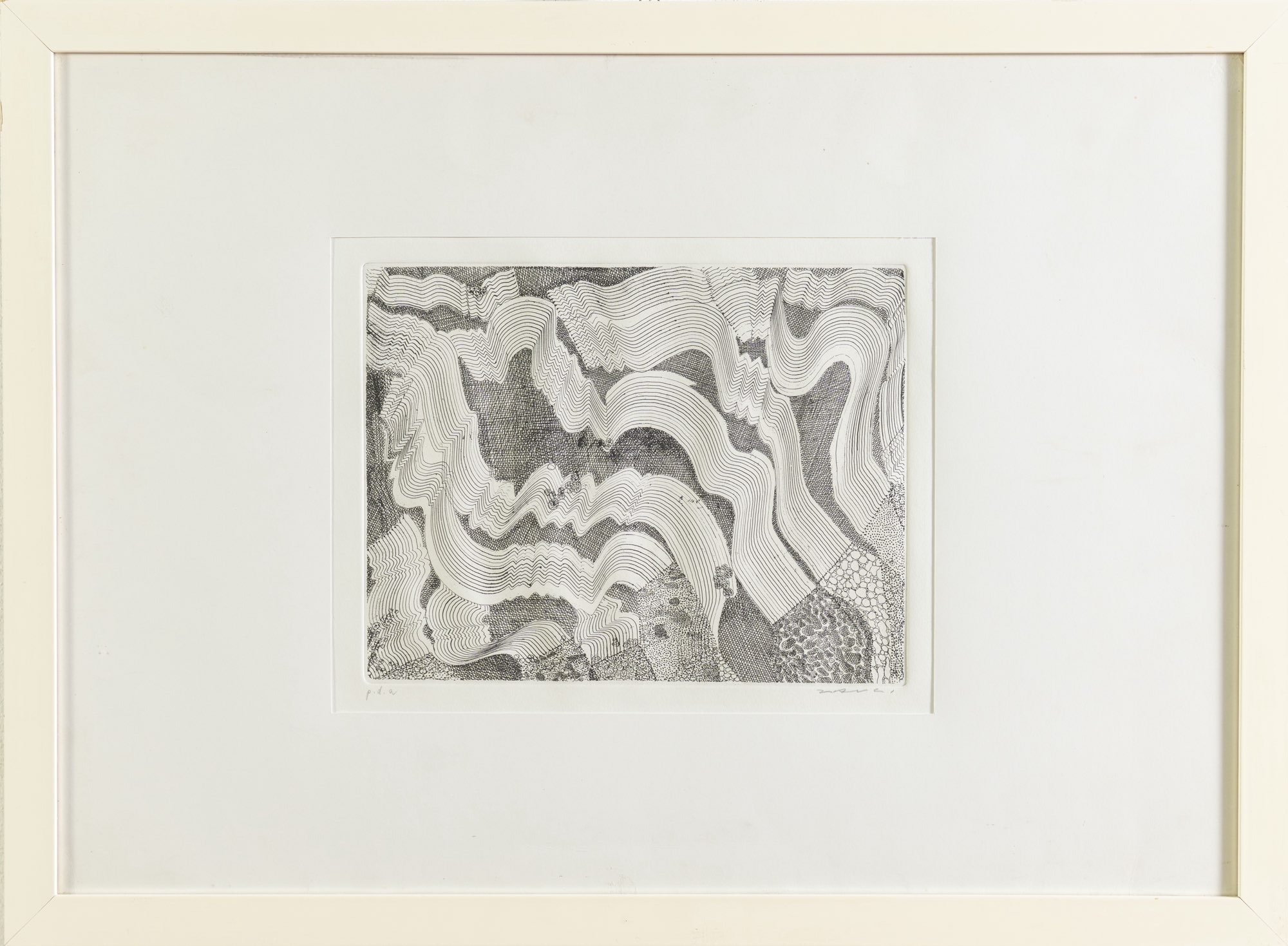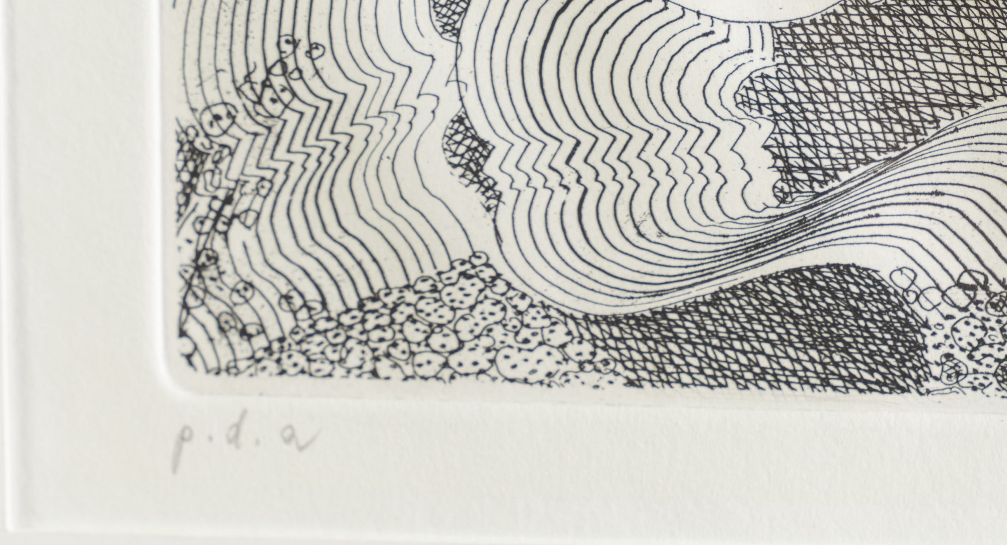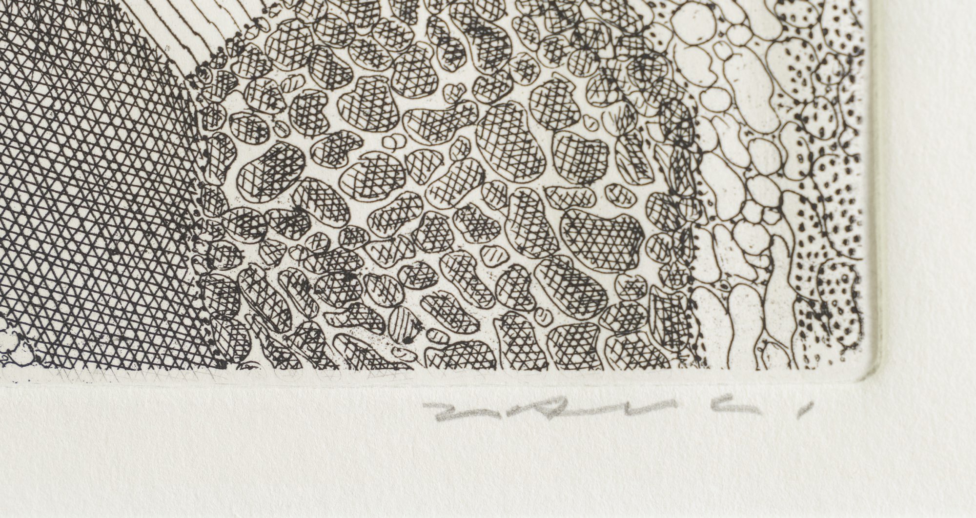 Acquaforte puntasecca su carta, firmata a matita in basso a destra, reca esemplare “p.d.a.” in basso a sinistra, lastra H cm 24x31,5 – con cornice H cm 55x75
