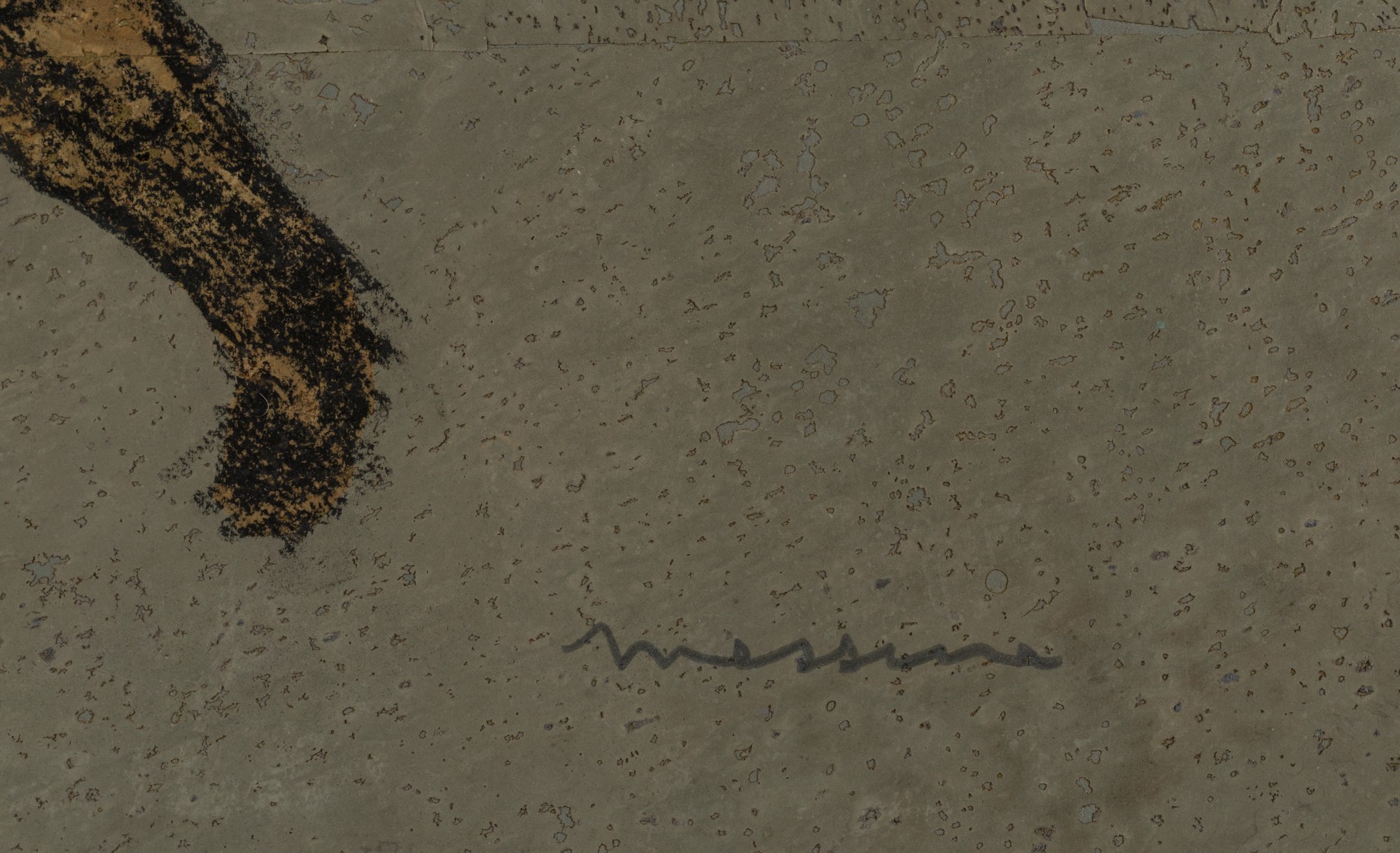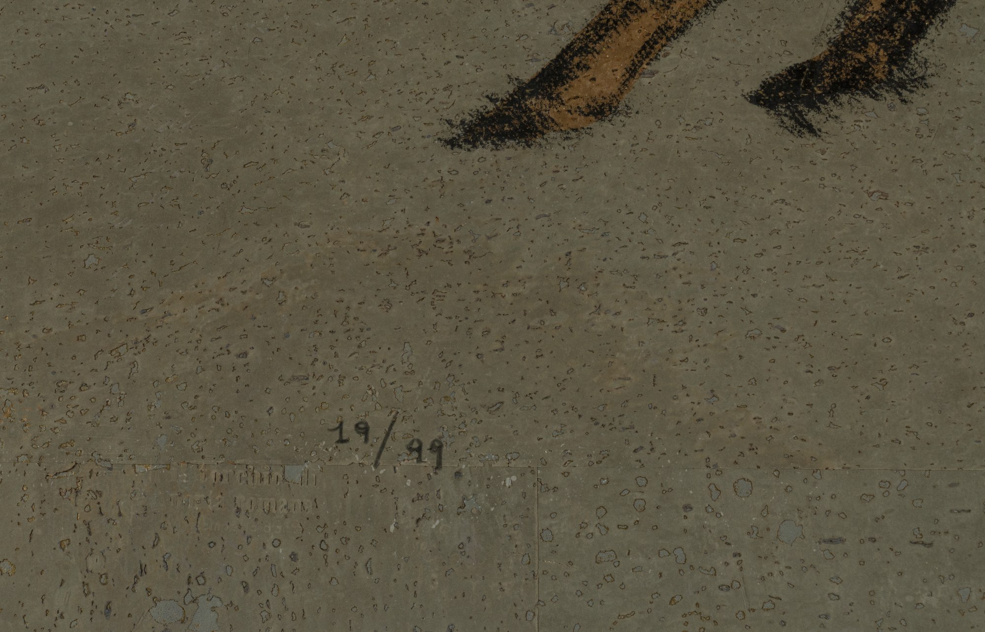Serigrafia a colori su sughero applicato a carta, reca firma a matita in basso a destra, numerazione 19/99 in basso a sinistra e timbro a secco della Stamperia d’arte “Il Torchio di Porta Romana”, foglio H cm 50x69,5