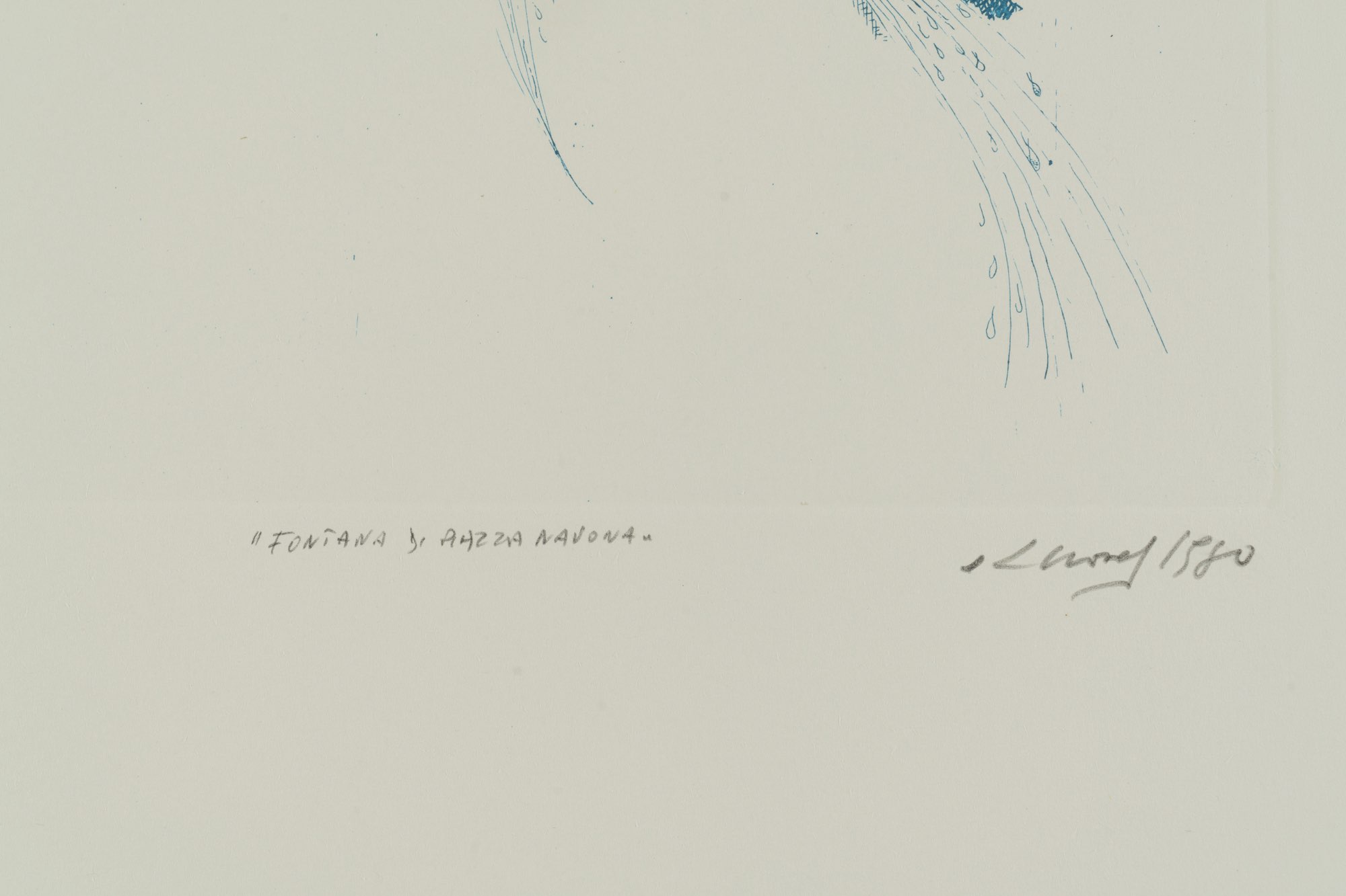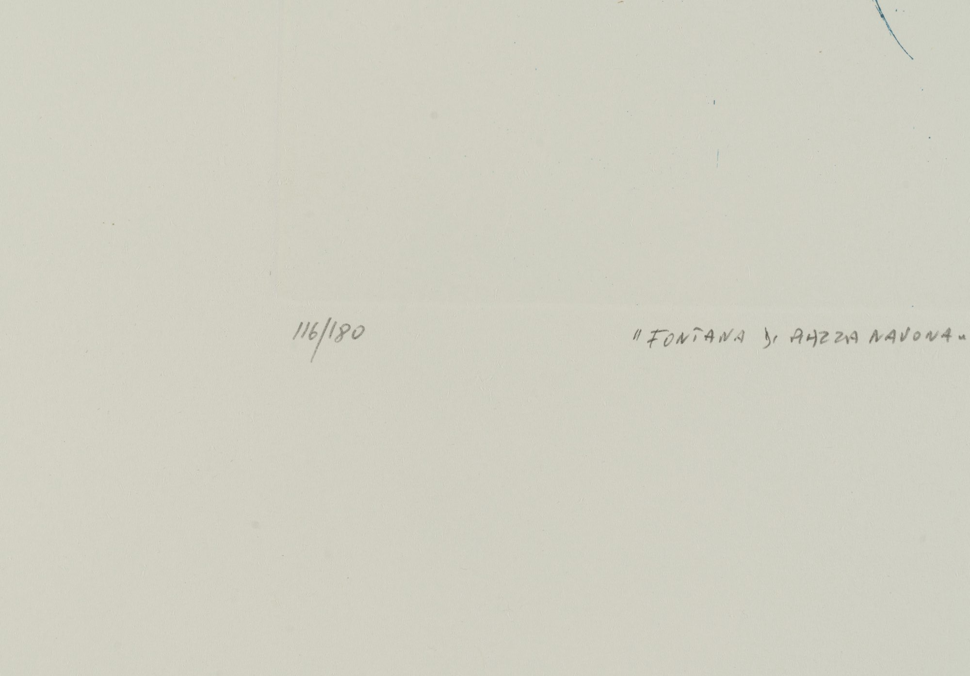 Incisione acquaforte a colori su carta, presenta firma e data a matita in basso a destra, titolo in basso al centro e numerazione 116/180 in basso a sinistra, reca timbro a secco della Stamperia d’arte “Il Ponte – Firenze”, lastra H cm 34,5x24 – foglio H cm 70x50