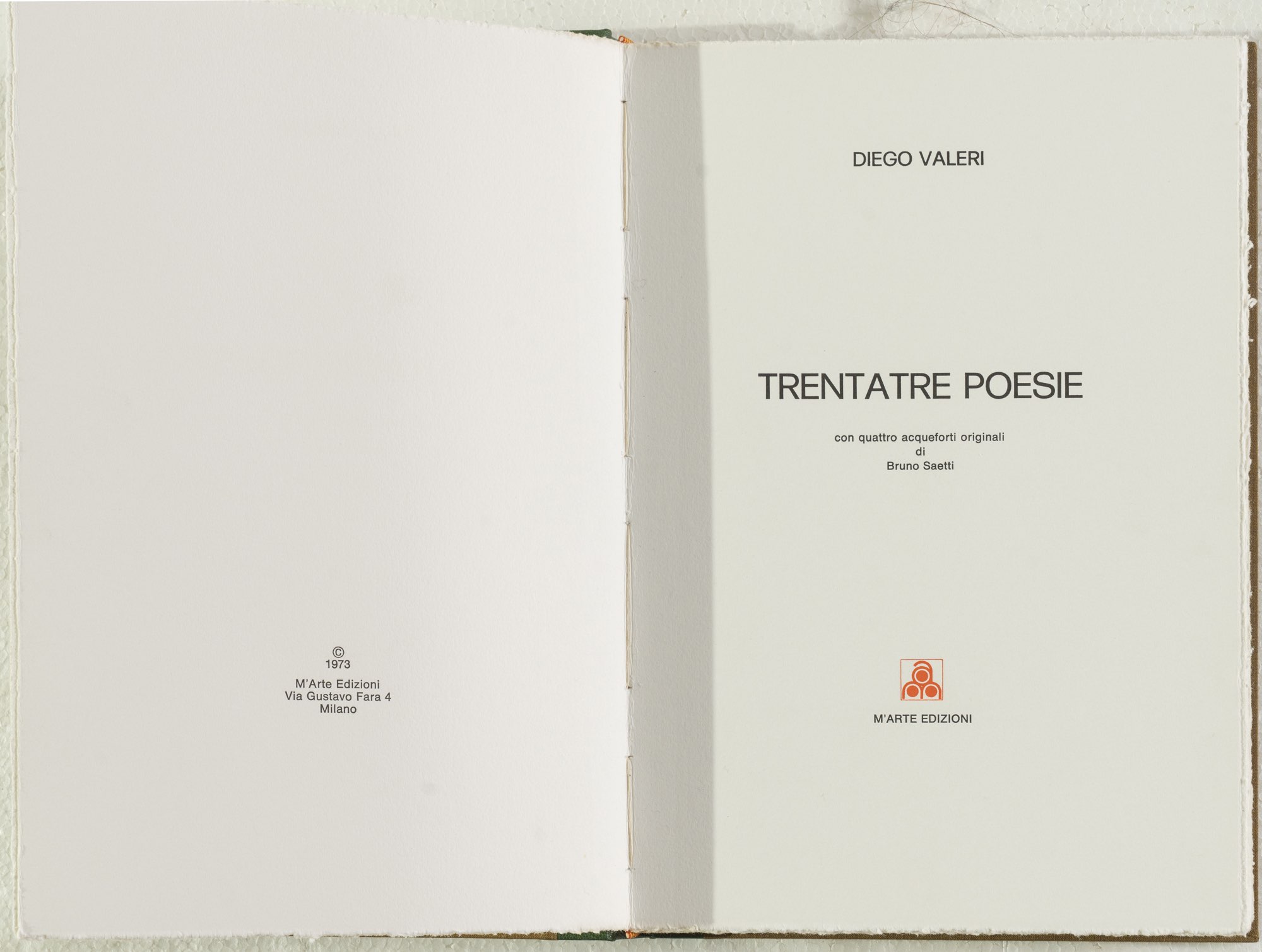 Bruno Saetti (Bologna 1902 - 1984), Libro “Trentatré Poesie di Diego Valeri con quattro acqueforti originali di Bruno Saetti”, 1973.
