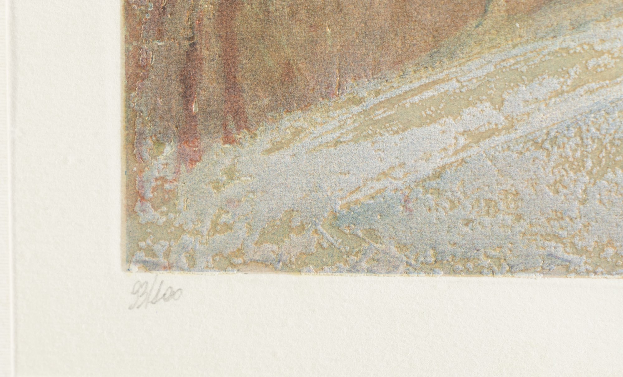 Litografia a colori su carta, firmata in basso a destra, reca numero di tiratura in basso a sinistra 93/100, lastra H cm 41,5x53,5 – con cornice H cm 61x81