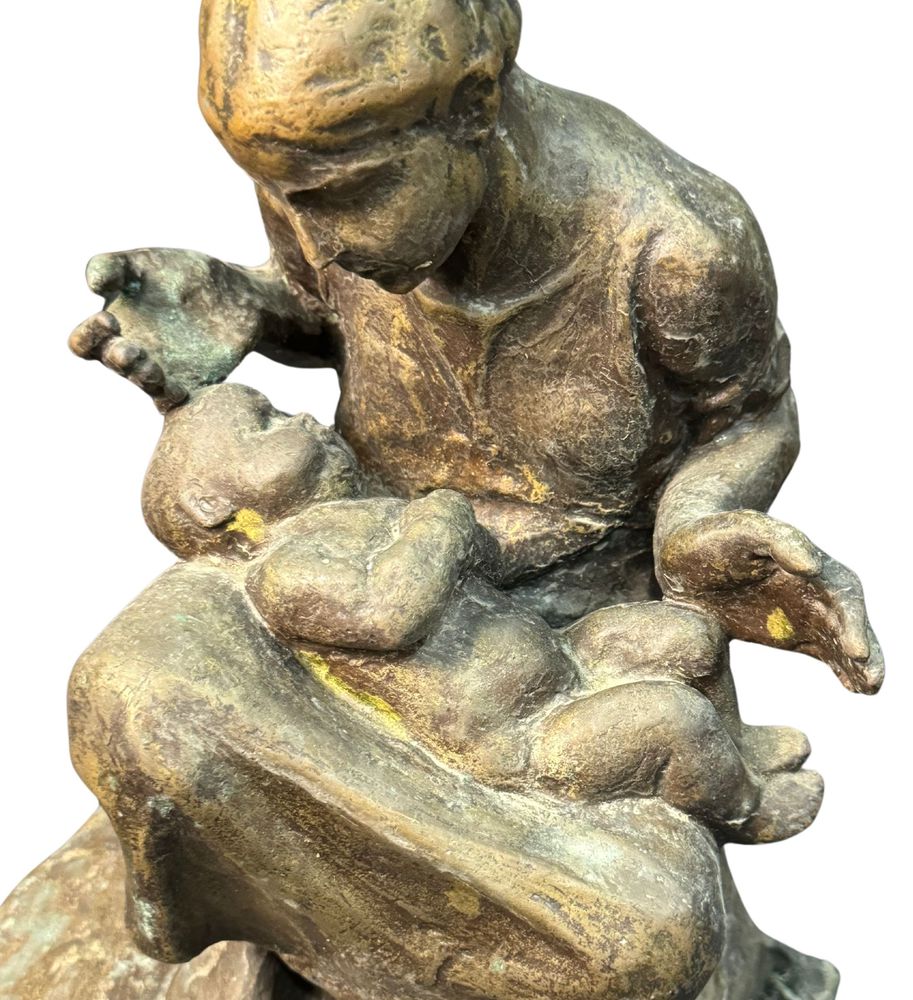 Scultura in bronzo, patinato a cera persa su base in marmo, periodo XX secolo, raffigurante Scena materna. Reca firma G. Bisceglia. Dimensioni: 33x21x19 cm. Opera in buone condizioni.