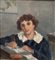 Dipinto olio su tavola, periodo XX secolo scuola Italiana, raffigurante Ritratto di giovane studentessa. Dimensioni compreso cornice: 39,5x40 cm. Dimensioni interno cornice: 21x21 cm. Reca firma laterale a destra da - Angela Carugati (1881 - 1977). Opera in buone condizioni.