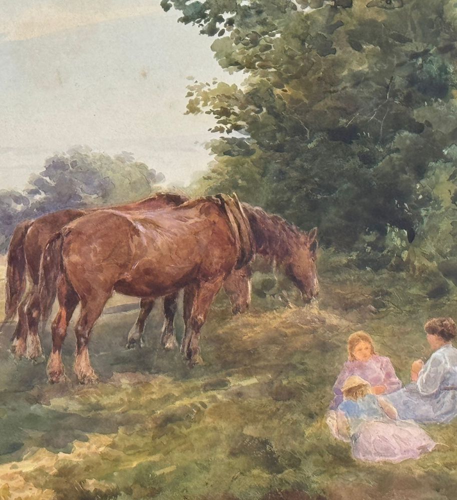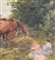 Acquerello su carta, periodo XIX/XX secolo secolo scuola Europea, raffigurante Paesaggio con personaggi e cavalli (Estate). Dimensioni compreso cornice: 84x69 cm. Dimensioni interno cornice: 52x37 cm. Reca firma in basso a sdestar da Francis Appleton. Opera in buone condizioni con certificato di autenticità sul retro lasciato dall'Istituto Nazionale d'Arte.