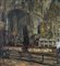 Dipinto olio su tela, periodo XIX secolo scuola Italiana, raffigurante Interno di chiesa. Dimensioni compreso cornice: 73x88 cm. Dimensioni interno cornice: 64x76 cm. Da artista anonimo. Opera in buone condizioni. Da segnalare due piccoli punti di restauro. (Probabile attribuzione a Domenico Battaglia).