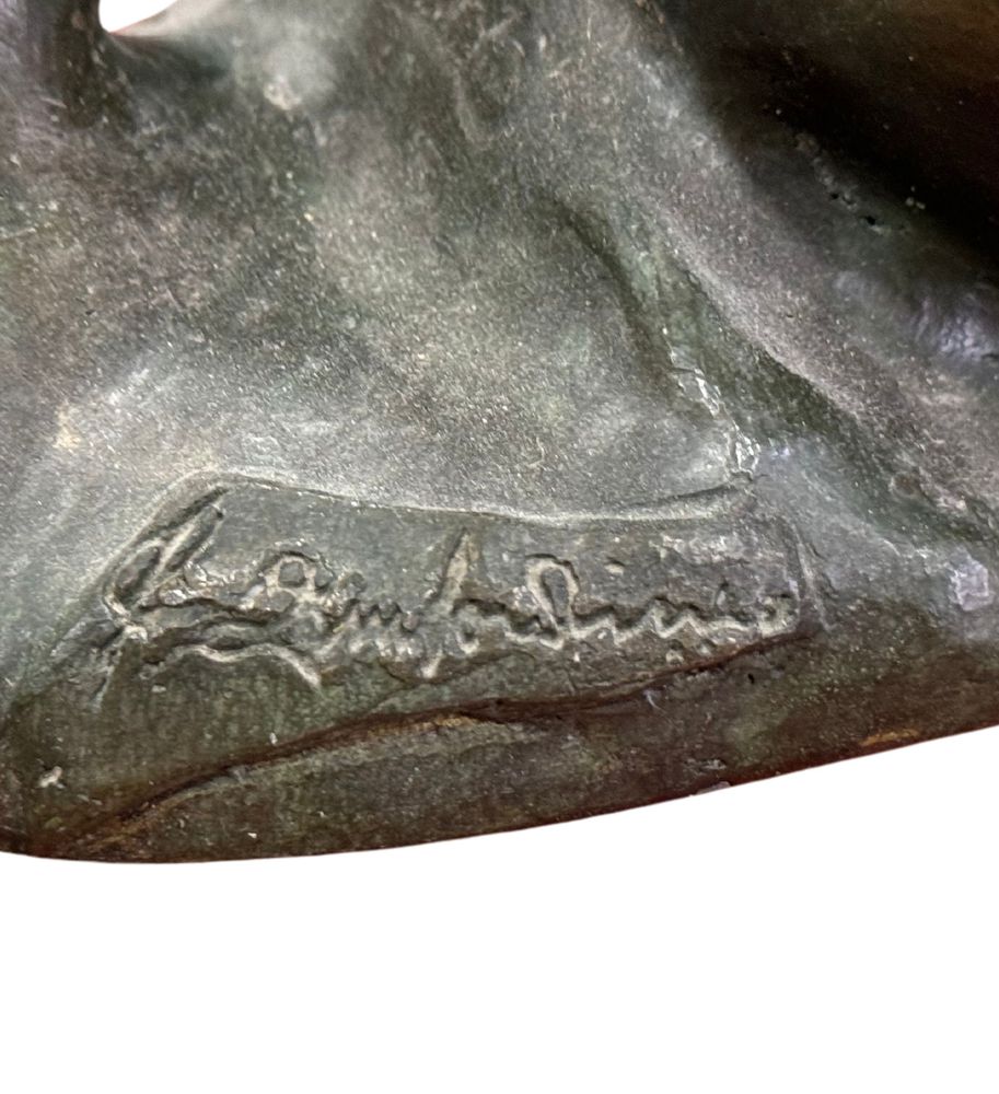 Scultura in bronzo a cera persa, periodo XX secolo, raffigurante Personaggio. Dimensioni: h20x23x16 cm. Scultura in buone condizioni. Reca firma.