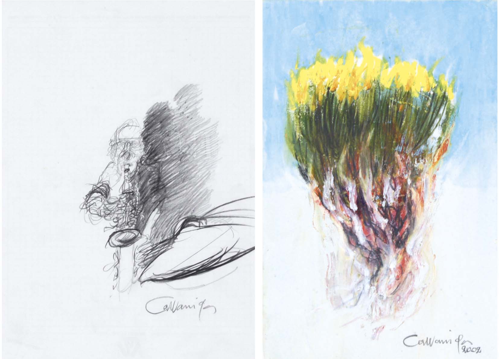CAZZANIGA GIANCARLO Monza 1930 Sax - Ginestre lotto di due opere: disegno a...