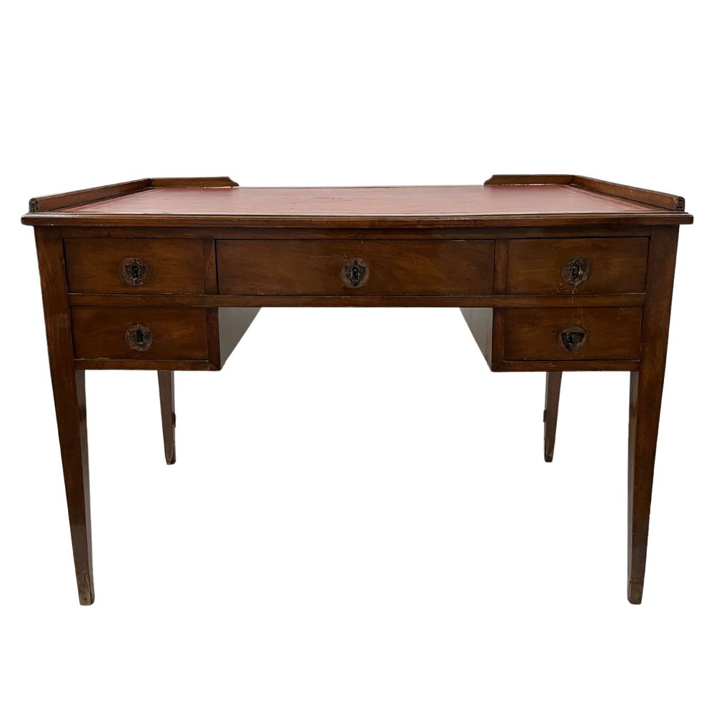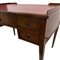 Scrivania legno 2+1+2 cassetti, piano rivestito in pelle di colore rosso, periodo Napoli Luigi XVI lastronata in legno di ciliegio.