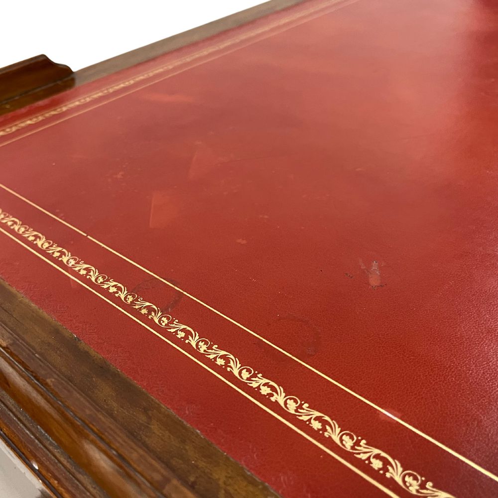 Scrivania legno 2+1+2 cassetti, piano rivestito in pelle di colore rosso,...