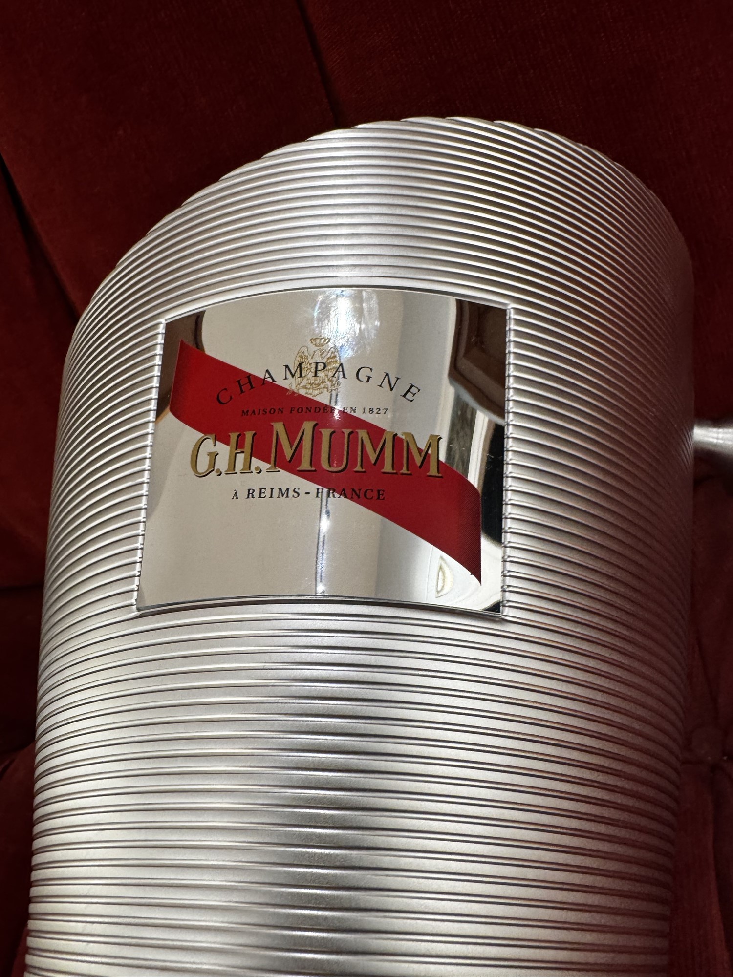 G.H. MUMM Secchiello da Champagne in metallo. Reca marchio Champagne G.H. Mumm.