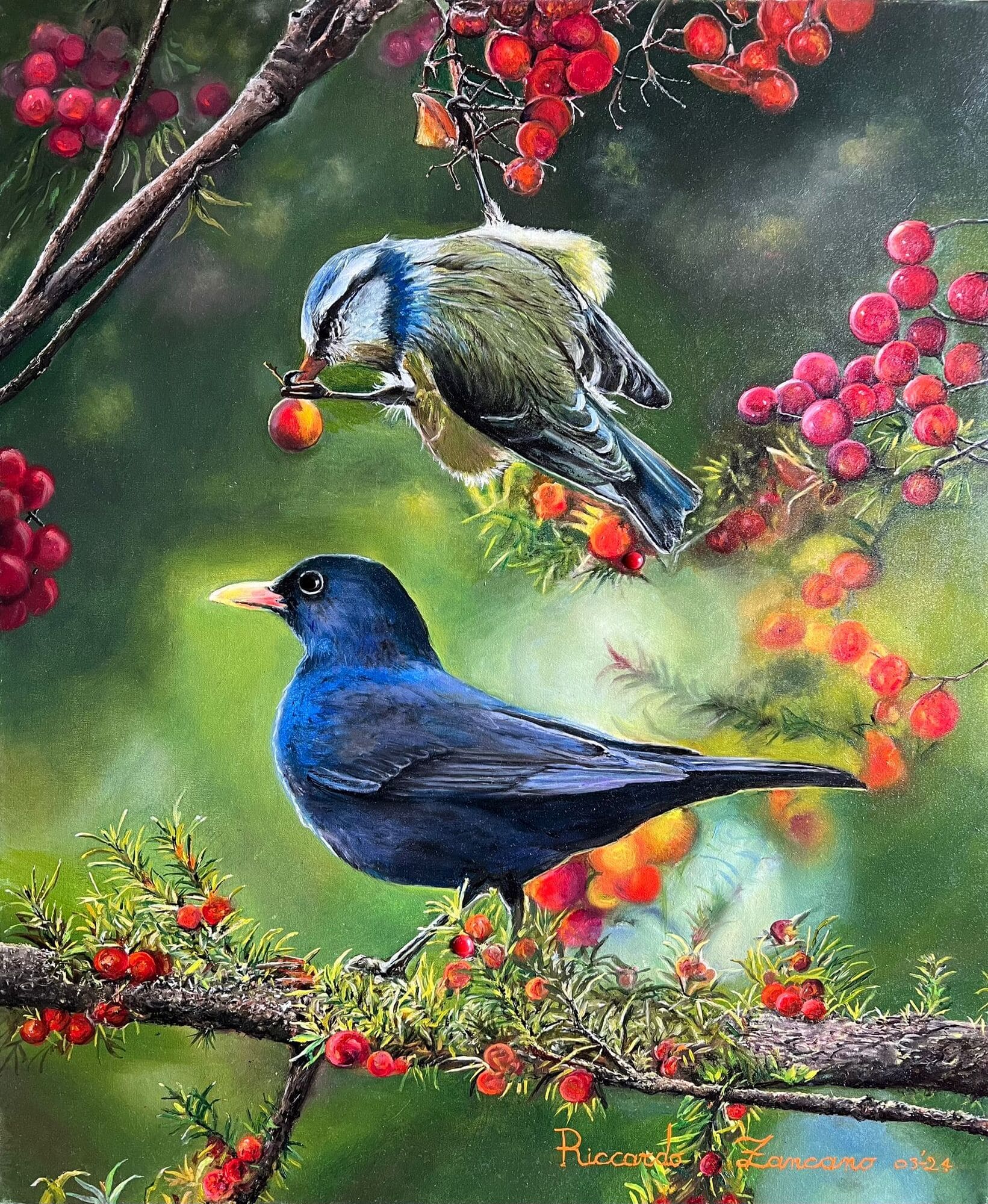Tecnica: olio pietre semipreziose (Giada nera e Corallo rosso sardo).