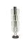 Lampada da terra con struttura in metallo e grosse lastre di vetro curvato.