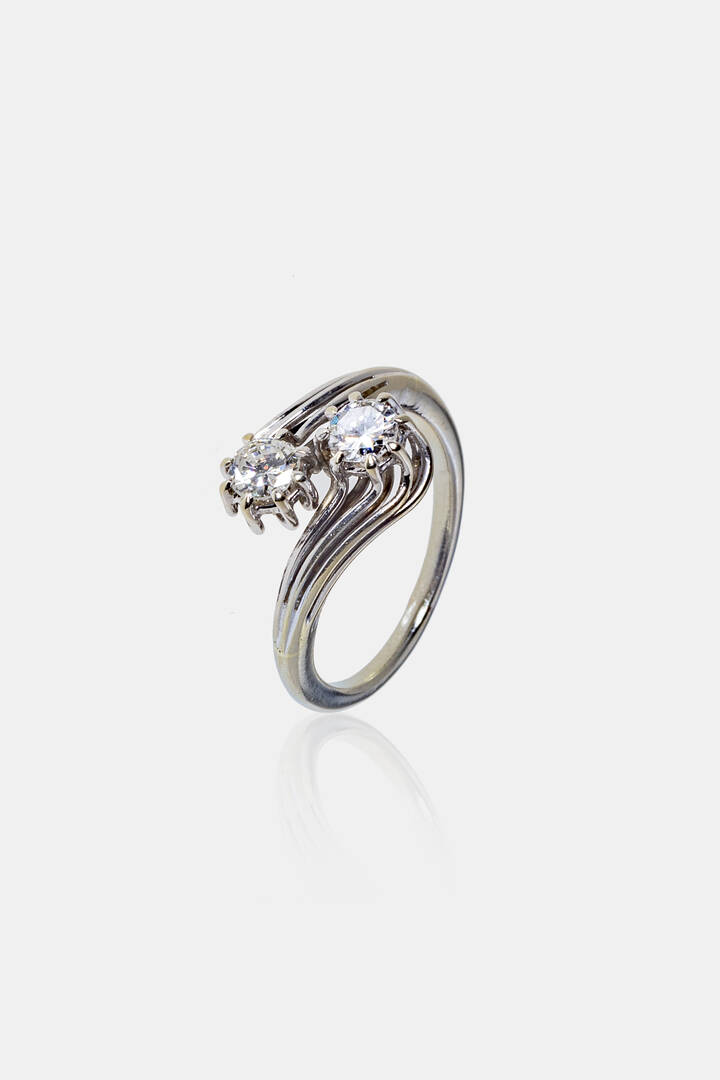 in oro bianco, modello contrarié, anni '50, con due diamanti taglio brillante per totali ct 0,50 ca