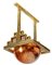 Lampada a sospensione in ottone lucido, metallo cromato e rame, inserti in vetro.