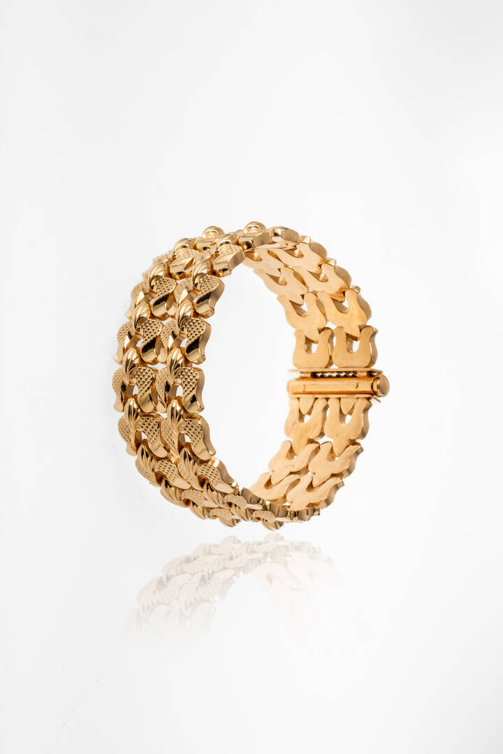 in oro giallo, anni '50, a motivi geometrici lavorati