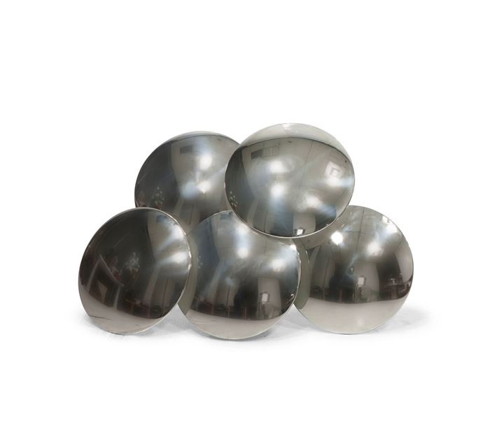 Lampada da parete a cinque specchi in acciaio cromato.