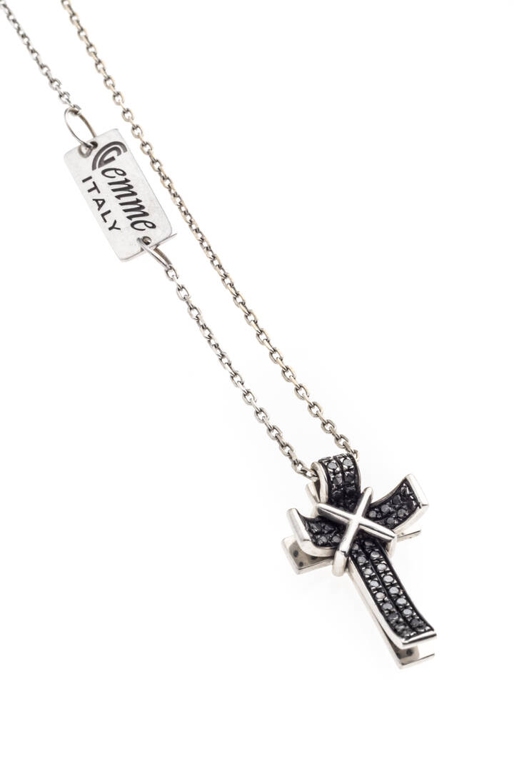 in oro bianco, a forma di croce, con diamanti di colore nero per totali ct 0,60 ca