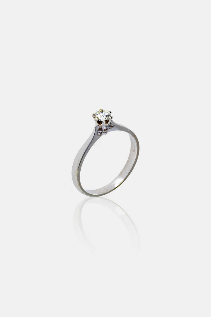 in oro bianco, con al centro diamante taglio brillante di ct 0,20 ca, probabile colore G-H, purezza IF-VVS