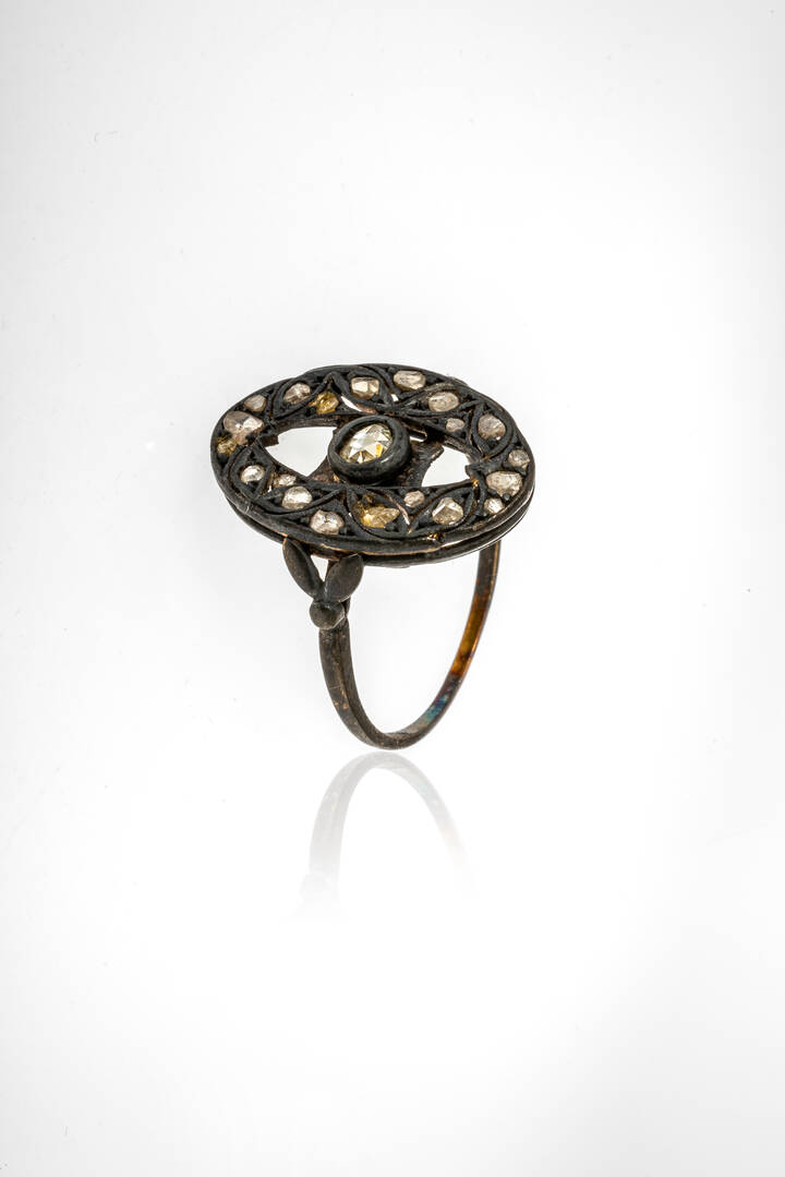 in argento, XIX secolo, sommità a navette con rosette di diamanti per totali ct 0,50 ca