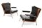 Coppia di poltrone in alluminio pressofuso e legno di teak, imbottitura in skai.